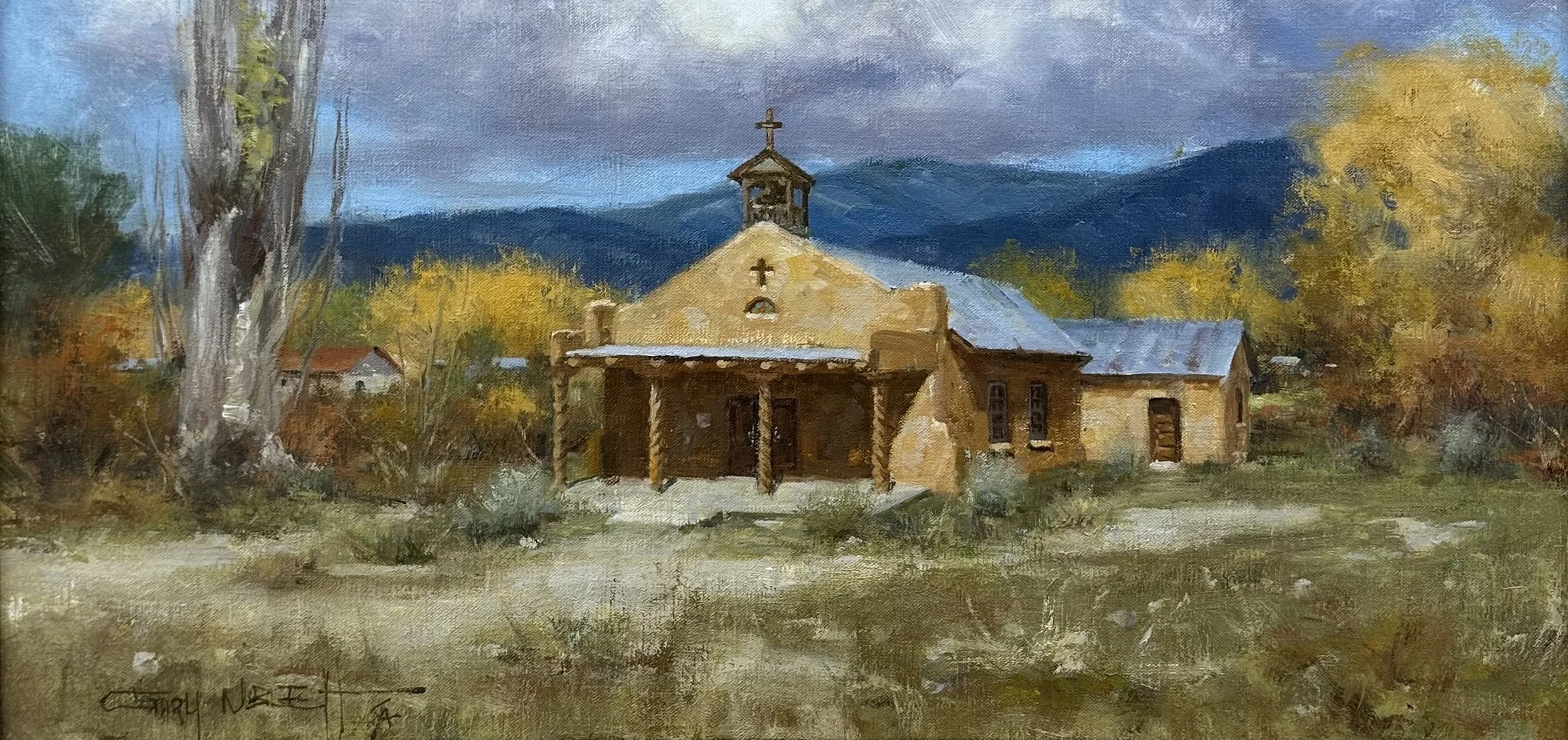 New Mexico’s adobe churches are a fixture of the landscape here, and no one captures them better than Gary Niblett. Once an illustrator for Hanna-Barbera, Niblett is best known for his paintings of cowboy life and, more recently, idyllic Southwestern missions.