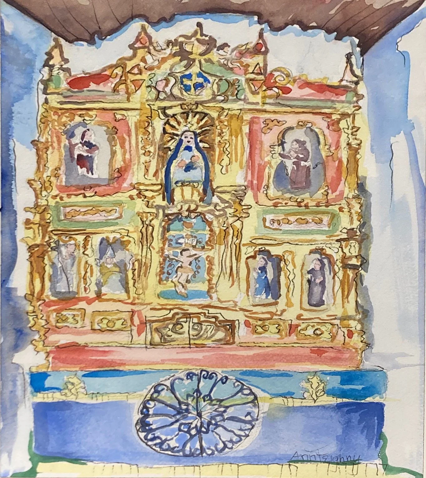 Ann Shannon Feighny - Santa Cruz Church, watercolor, 12 ¼ x 9 in.